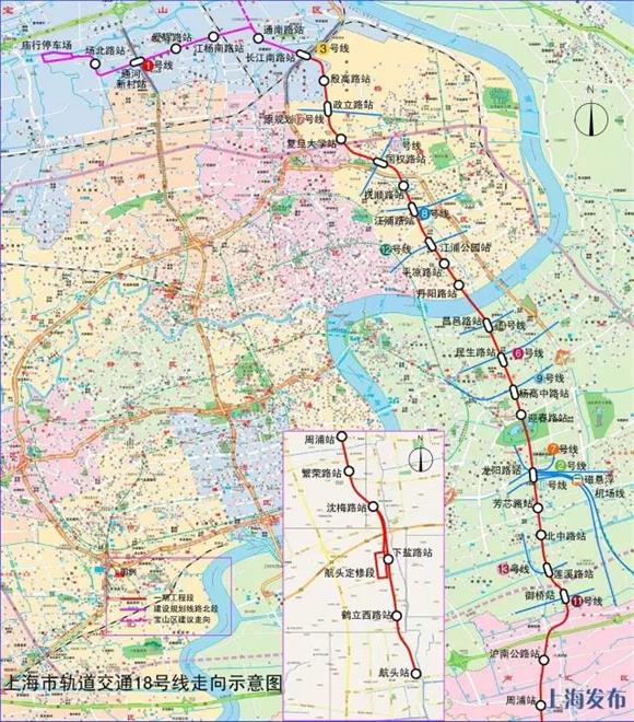 18號(hào)線一期工程自長江南路站至航頭站,全長36.8公里,車站26座。目前已開工18座車站。