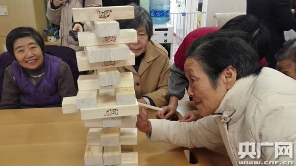 陸家嘴長(zhǎng)者照護(hù)之家的老年人在搭積木