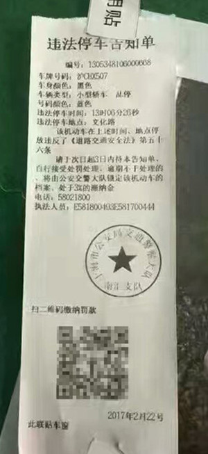 浦東現(xiàn)違停單二維碼? 滬警方:從未用過(guò)此類告知單