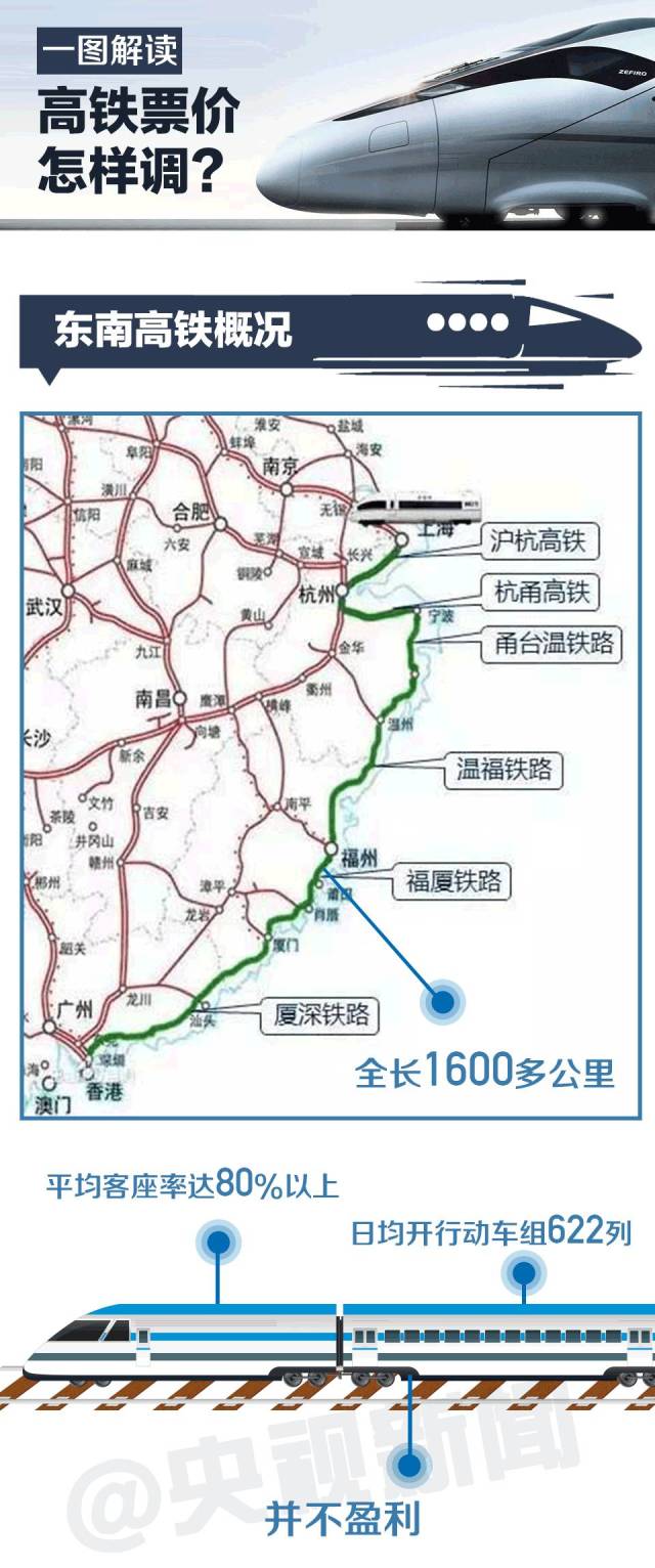 東南沿海高鐵是由上海至杭州、杭州至寧波、寧波至深圳三段組成,其中滬杭段全長(zhǎng)159公里,杭甬段全長(zhǎng)155公里,甬深段全長(zhǎng)1309公里。滬杭、杭甬段時(shí)速300公里高鐵動(dòng)車組票價(jià)不在調(diào)整范圍。