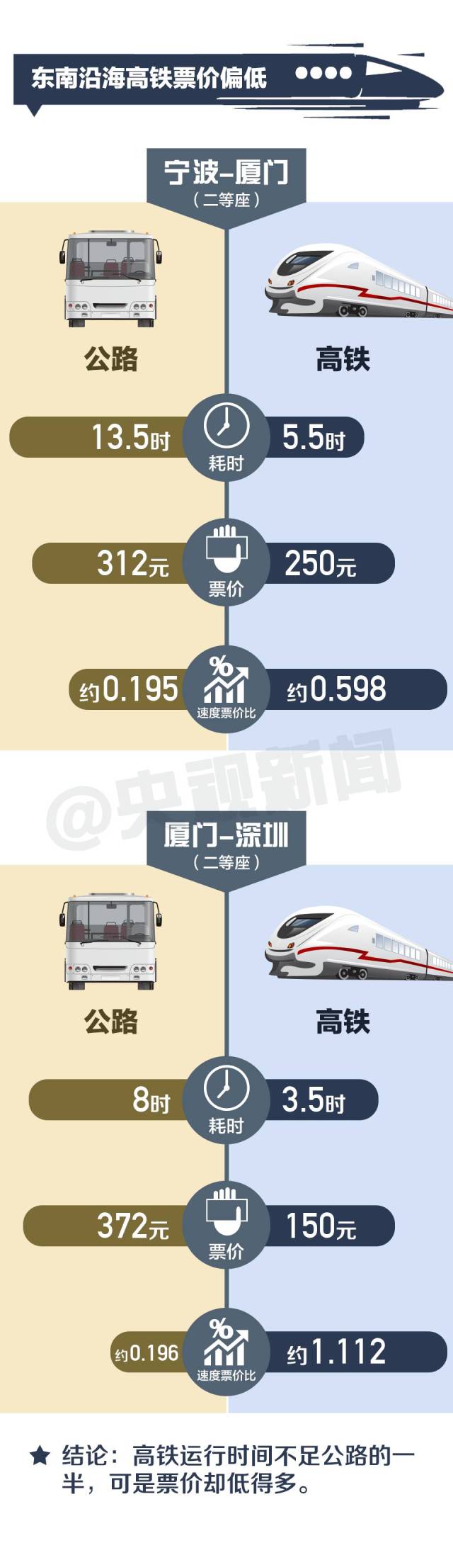 東南沿海高鐵80%的客座率卻不賺錢(qián),原因是多方面的。鐵路部門(mén)認(rèn)為,其中一個(gè)重要原因是定價(jià)偏低,且明顯低于同區(qū)段公路票價(jià)。情況到底是什么樣?
