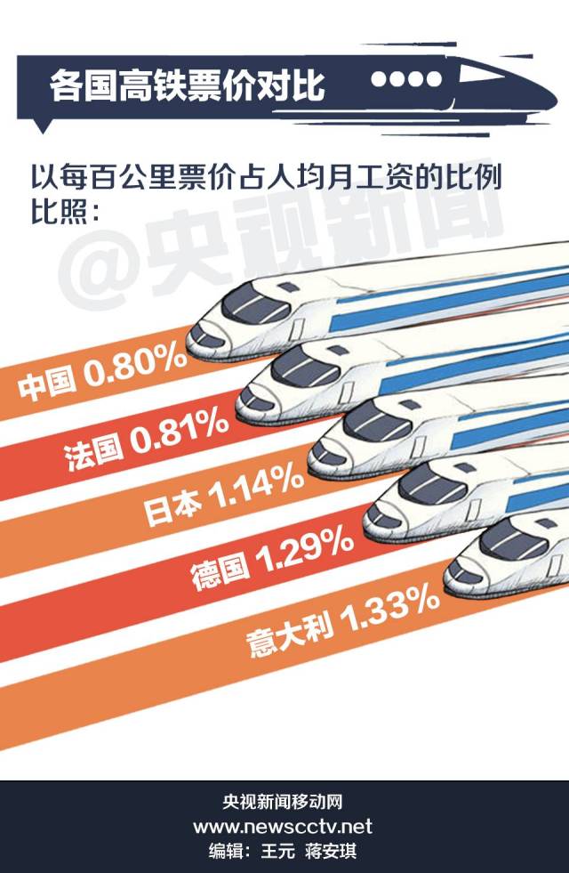 一提到價(jià)格,肯定有人會(huì)問(wèn):中國(guó)高鐵票價(jià)到底貴不貴?其實(shí),目前中國(guó)高鐵的基準(zhǔn)價(jià)并不高。來(lái)對(duì)比一下各國(guó)的高鐵票價(jià)。