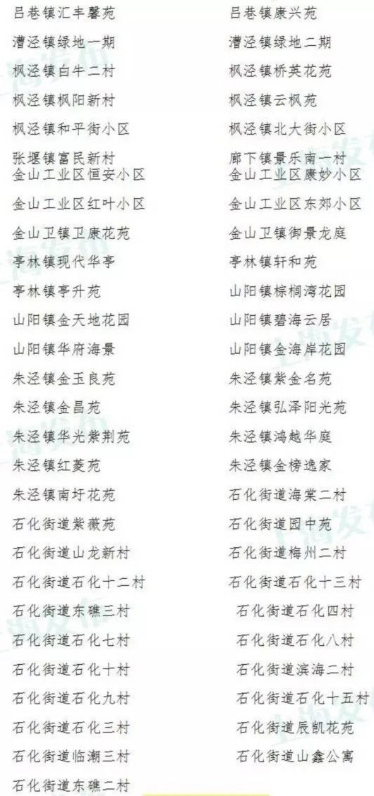 金山區(qū)(共55個(gè))