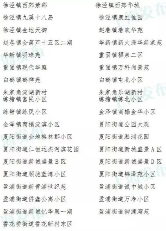 青浦區(qū)(共37個(gè))