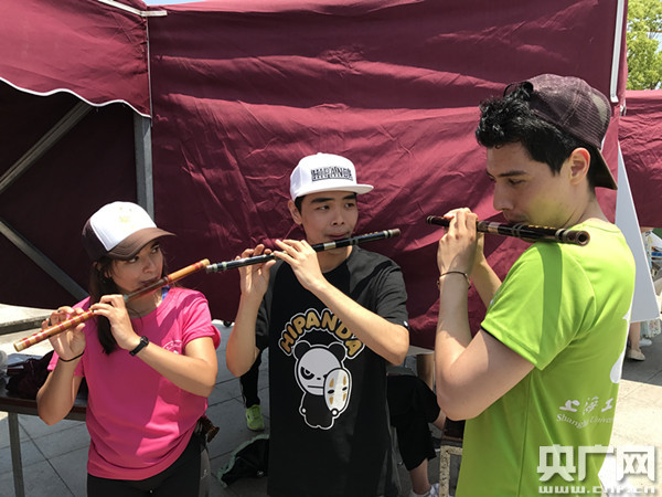 在競(jìng)渡之余,作為承辦單位的華東理工大學(xué)為前來(lái)參加和觀摩比賽的外國(guó)留學(xué)生準(zhǔn)備了一道文化大餐:穿著漢服彈古琴,品著粽子聽京劇……在隊(duì)員訓(xùn)練和休整期間,該校學(xué)生社團(tuán)“八仙過(guò)海、各顯神通”,向世界各地的留學(xué)生展示了琴藝、插花、漢服、書法、京劇等國(guó)粹,為外國(guó)留學(xué)生體驗(yàn)中國(guó)的傳統(tǒng)文化提供了便利。正在手繪京劇臉譜的巴基斯坦留學(xué)生王凱之告訴記者,今天是自己初次接觸京劇,立刻就對(duì)這一“美麗的”中國(guó)傳統(tǒng)文化產(chǎn)生了濃厚興趣,并表示回校后一定會(huì)對(duì)其進(jìn)行具體了解。