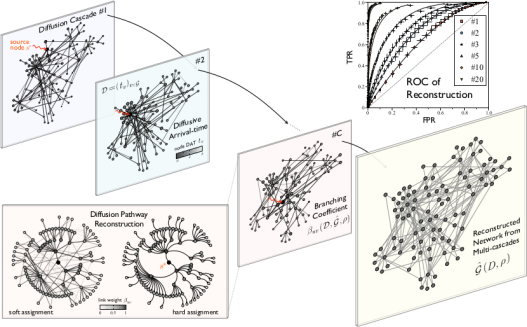 圖1:基于多次擴散過程時間數(shù)據(jù)的隨機時效網(wǎng)絡(luò)拓撲推斷原理及重構(gòu)精度。