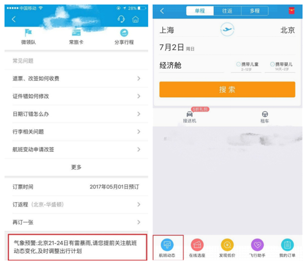 京津冀暴雨預(yù)警 攜程機(jī)票全面升級(jí)服務(wù)保障出行