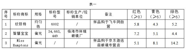而交通訊號(hào)透射比將直接影響兒童在佩戴太陽鏡時(shí)對(duì)于交通訊號(hào)燈的分辨能力,本次比較試驗(yàn)中,有3件樣品的交通訊號(hào)透射比不符合測試要求(詳見表一)。