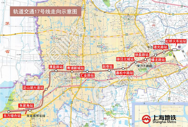 據(jù)了解,17號線全長35.3公里,全線共設虹橋火車站(與2、10號線換乘)、諸光路站、蟠龍路站、徐盈路站、徐涇北城站、嘉松中路站、趙巷站、匯金路站、青浦新城站、漕盈路站、淀山湖大道站、朱家角站、東方綠舟站13座,其中高架站6座、地下站7座。
