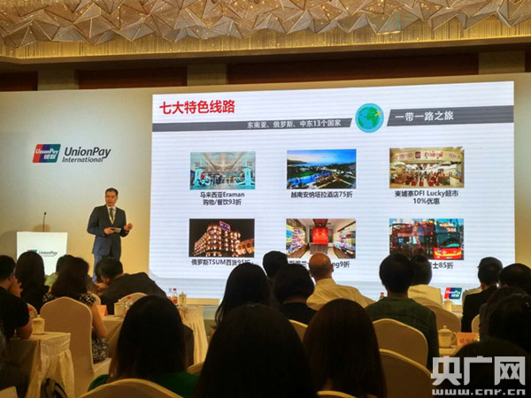 銀聯(lián)國(guó)際相關(guān)負(fù)責(zé)人介紹“暑假持卡人回饋季”活動(dòng) 央廣網(wǎng)記者林馥榆 攝