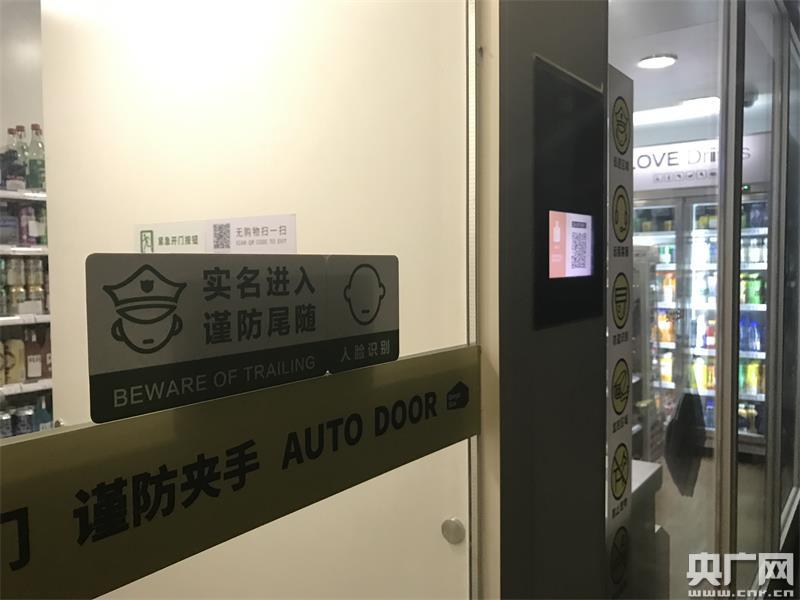 無人超市門口提示標(biāo)識:“實名進(jìn)入 謹(jǐn)防尾隨”