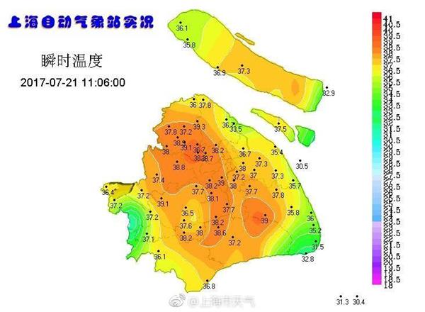 繼上海連續(xù)多日的發(fā)布高溫橙色預警之后,今天中午12時22分,上海中心氣象臺發(fā)布高溫紅色預警信號,截至13時,申城中心城區(qū)(徐家匯站)達到40℃,打破本月14日創(chuàng)下的今年最高溫(39.7℃)紀錄。下午2點左右氣溫已經達到40.9度,突破2013年40.8度的歷史紀錄!也打破了徐家匯氣象觀測站145年紀錄!氣象部門表示高溫紅色預警的標準是:24小時內最高氣溫將升至40℃以上。在室外站幾分鐘,汗滴是迅速往下滴啊,真正的桑拿天。未來,申城“高燒”起碼還有5天。