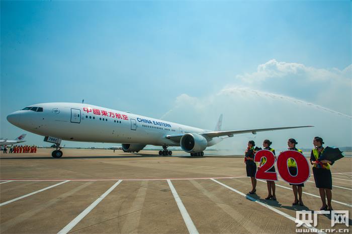 央廣網(wǎng)上海7月23日消息(記者吳善陽)一架編號為B-7882的波音B777-300ER飛機(jī)今天從西雅圖飛抵上海浦東機(jī)場,飛機(jī)經(jīng)過“水門”儀式的洗禮,正式加盟東航650余架機(jī)隊的“大家庭”,標(biāo)志著東航于2012年4月采購的20架波音777-300ER全部交付完畢。20架“集結(jié)”完畢之后將發(fā)揮出更佳的規(guī);瘍(yōu)勢,更好地服務(wù)于“一帶一路”建設(shè),服務(wù)于上海樞紐建設(shè),為全球乘客帶來非同一般的空中旅行體驗。