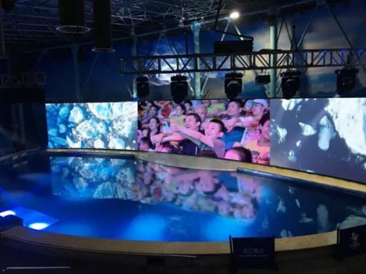 全新的白鯨表演結(jié)合聲光水影四重元素,呈現(xiàn)出星移斗轉(zhuǎn)、時(shí)空穿越、水影一體的多維震撼視覺效果。透過寬屏環(huán)幕的展示,觀眾們?cè)谔貏e的場(chǎng)景里以“親歷模式”與白鯨姐妹和極地動(dòng)物們進(jìn)行零距離接觸,帶來一場(chǎng)流連忘返的全新沉浸式觀賞體驗(yàn)。演出過程中,觀眾還能直觀地感受到馴養(yǎng)師和白鯨的默契配合,同時(shí)還能聽到白鯨姐妹優(yōu)美動(dòng)人的歌聲。