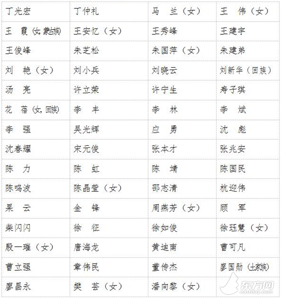 上海選舉產(chǎn)生十三屆全國人大代表名單(59名,按姓氏筆畫為序):