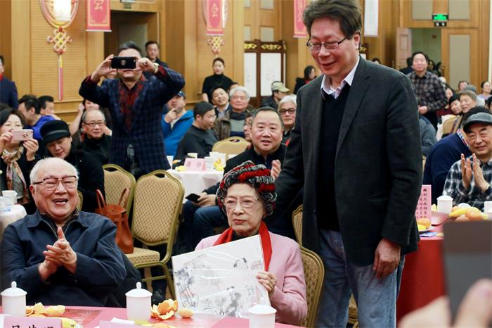 茶話會(huì)現(xiàn)場(chǎng),96歲高齡的秦怡和84歲的翻譯家薛范,72歲的書法家童衍方,60歲的評(píng)論家簡(jiǎn)平,48歲的曲藝演員高博文,36歲的雜技演員張碧歡和24歲的青年舞蹈演員譚一梅等從“90后”到“90后”老中青七輪生肖屬狗的藝術(shù)家代表集體亮相,贏得現(xiàn)場(chǎng)陣陣掌聲和歡呼聲,體現(xiàn)了藝術(shù)精神的代代相傳,體現(xiàn)了中華民族“尊禮、習(xí)禮、重禮、守禮”的優(yōu)良傳統(tǒng)。