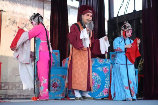 △近日,由山東濱州當(dāng)?shù)貐蝿F(tuán)等演出團(tuán)體組成的文化惠民演出隊(duì)在魏集鎮(zhèn)魏氏莊園北廣場(chǎng)搭臺(tái)開(kāi)唱。
