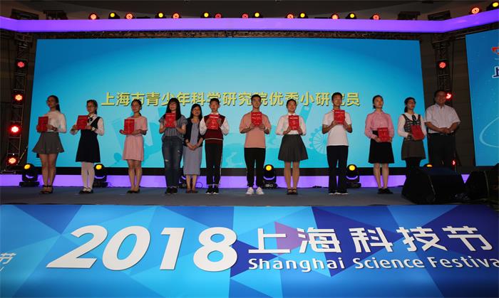 嘉賓為上海市青少年科學(xué)研究院優(yōu)秀小研究員頒獎(jiǎng)(陸嘉輝 攝)