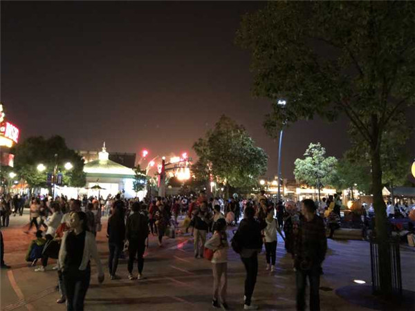 圖說:煙花匯演結(jié)束,迪士尼小鎮(zhèn)迎來散場高峰。戴天驕 拍攝
