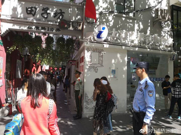 圖說:針對田子坊大客流,黃浦警方適時(shí)開啟限流模式。 黃埔警方 供圖