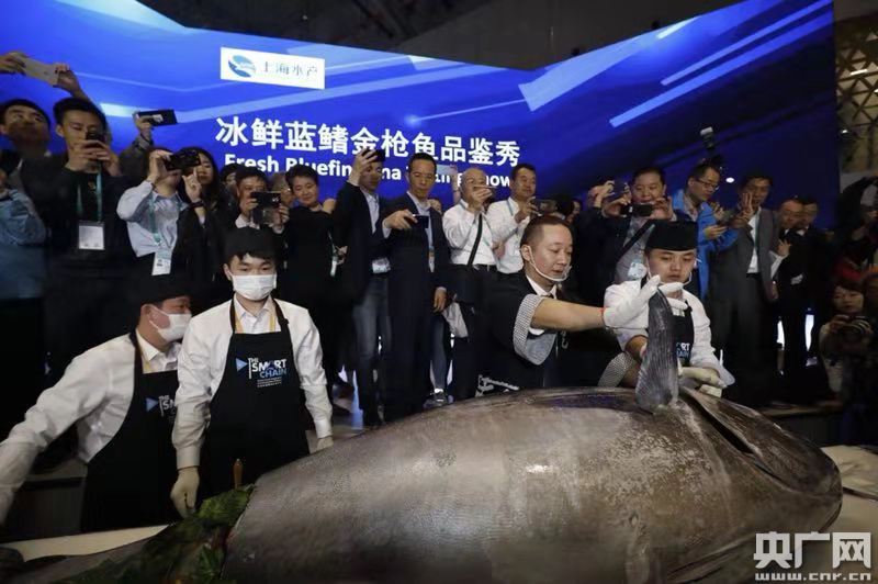500斤的藍鰭金槍魚亮相進博會(央廣網(wǎng)發(fā) 光明集團提供)