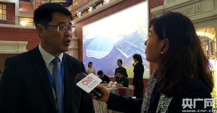 上海市旅游局國(guó)際旅游促進(jìn)處處長(zhǎng)陳平介紹上海參展情況。(央廣網(wǎng)記者 林馥榆 攝)