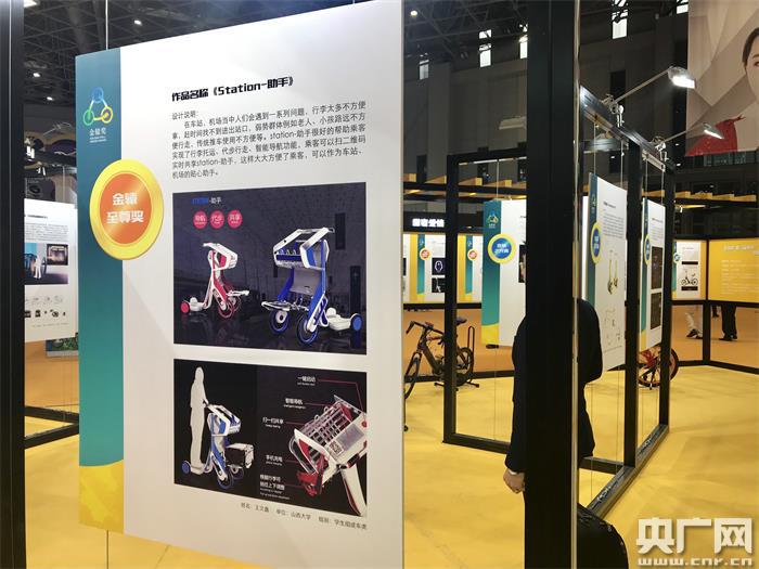 山西大學(xué)學(xué)生王文鑫設(shè)計的“Station-助手”獲得本屆大賽最高獎項“金轅至尊獎”。(央廣網(wǎng)記者 唐奇云 攝)