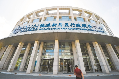 昨天,原臨港企業(yè)服務(wù)中心啟用新名字——“中國(上海)自由貿(mào)易試驗區(qū)臨港新片區(qū)行政服務(wù)中心”。 (圖片來源:視覺中國)