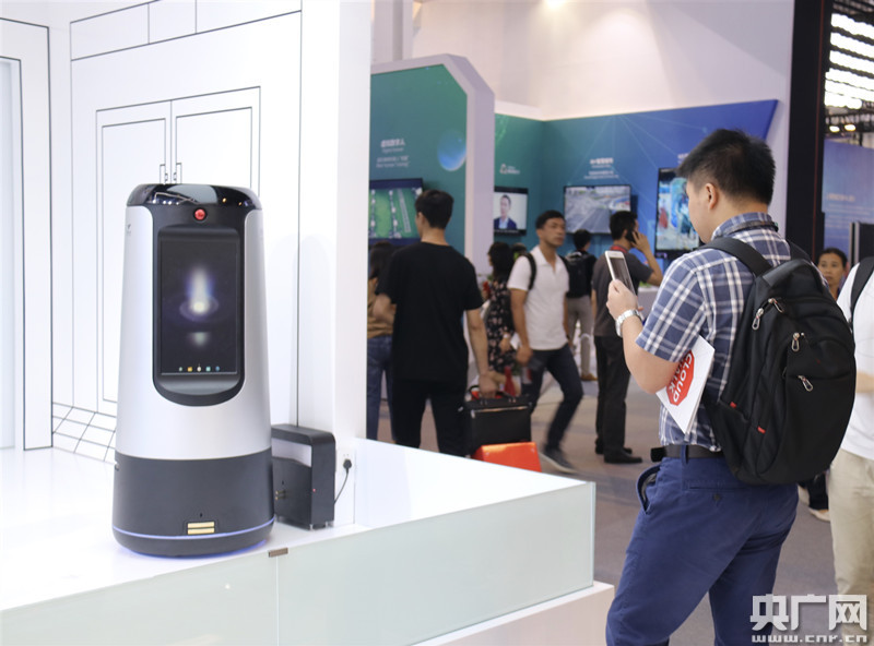 美團(tuán)室內(nèi)無人配送機(jī)器人——福袋(央廣網(wǎng)記者 唐奇云 攝)