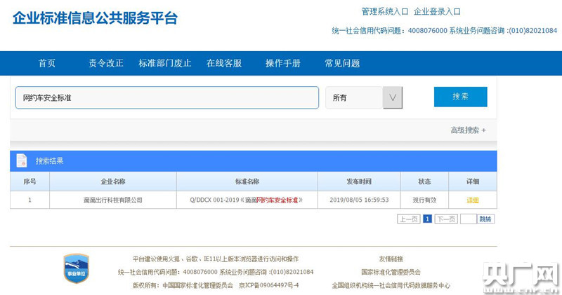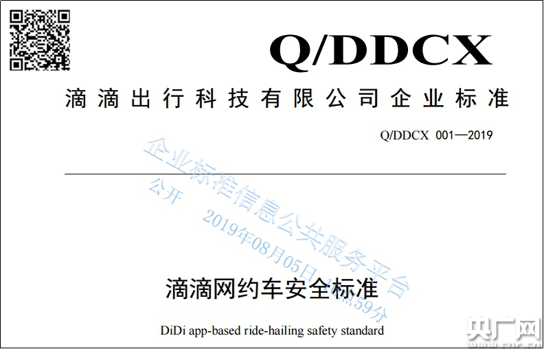 (滴滴出行在企業(yè)標準信息公共服務平臺發(fā)布《滴滴網(wǎng)約車安全標準》)(央廣網(wǎng)發(fā) 滴滴提供)
