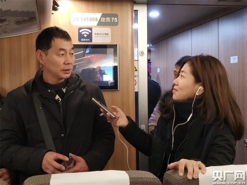 央廣記者采訪搭乘首趟春運團(tuán)體包車的返鄉(xiāng)務(wù)工人員(央廣網(wǎng)記者 林馥榆 攝)