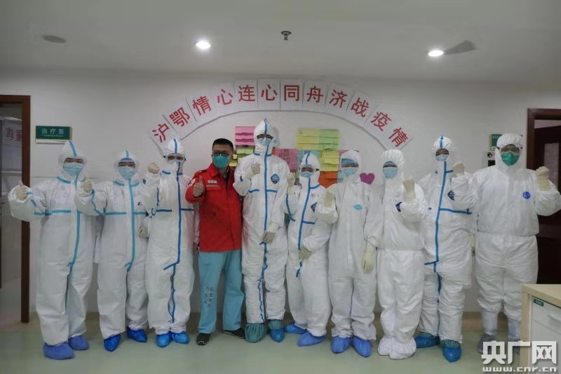 我們醫(yī)療組里,有武漢當(dāng)?shù)氐尼t(yī)護(hù)人員,我們來(lái)了之后,他們紛紛選擇留下來(lái)堅(jiān)守在崗位上,介紹患者病情的時(shí)候如數(shù)家珍。第一次聽(tīng)交班時(shí),我鼻子酸酸的,突然想到,在這里躺著的每一位患者都仿佛是武漢同事們的至親啊,在這一刻,是真正的性命相托!武漢同事們?cè)诟颊呓榻B我們的時(shí)候,都說(shuō):“你們看,我們上海的親人們來(lái)嘍,來(lái)救治大家了哈!要繼續(xù)堅(jiān)持一下哈!”