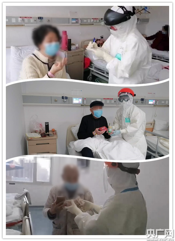 剛開(kāi)始投入醫(yī)療工作,患者的精神狀態(tài)引起包括支委李鋒在內(nèi)的全體醫(yī)護(hù)人員的擔(dān)憂!斑@是一批病情嚴(yán)重但是沒(méi)有達(dá)到進(jìn)入ICU病房標(biāo)準(zhǔn)的患者,是一批生活無(wú)法自理卻沒(méi)有任何親屬照顧的患者!笨粗蠖鄶(shù)患者眼中的無(wú)助和絕望,他和隊(duì)友們感到一陣陣痛徹心扉。隊(duì)員們一致認(rèn)為:患者這樣的精神狀態(tài),勢(shì)必影響到他們對(duì)醫(yī)療的配合,甚至可能引起心理上的崩潰!必須盡快地糾正,刻不容緩!2月12日下午,潘文彥準(zhǔn)備了一箱橘子和面包,組織醫(yī)護(hù)人員送入隔離區(qū),分發(fā)給每位患者。雖然每位患者僅分到2個(gè)橘子,卻讓大家喜出望外:有人說(shuō)是不是過(guò)節(jié)才發(fā)的,太高興了;有人說(shuō),看來(lái)大家沒(méi)有忘記我們;還有人說(shuō),太好吃了,很久沒(méi)有吃到水果,真甜啊!還有位患者,由于直系親屬相繼病故,生活物品也沒(méi)人補(bǔ)給。隊(duì)員們得知這一情況后,及時(shí)安排人員購(gòu)買(mǎi)了相應(yīng)的生活物品送給這位患者!翱吹矫课换颊吣樕现匦卵笠缰眠`了的笑容,我們也禁不住熱淚盈眶!崩钿h說(shuō),“因?yàn)槲覀冎,這些患者又有了活下去的勇氣和動(dòng)力!”