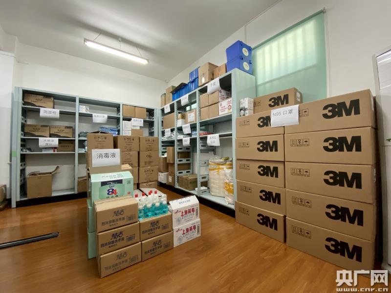 高校校醫(yī)院展示部分防疫物資儲(chǔ)備(央廣網(wǎng)記者 唐奇云 攝)