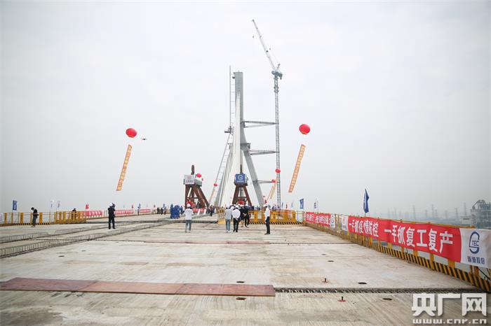 上海昆陽路越江大橋主橋今天順利合龍(央廣網發(fā) 王雨青攝)