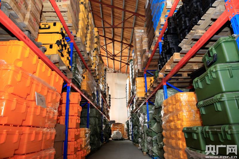 企業(yè)倉庫壘滿各類防護箱(央廣網發(fā) 楊亮 攝)