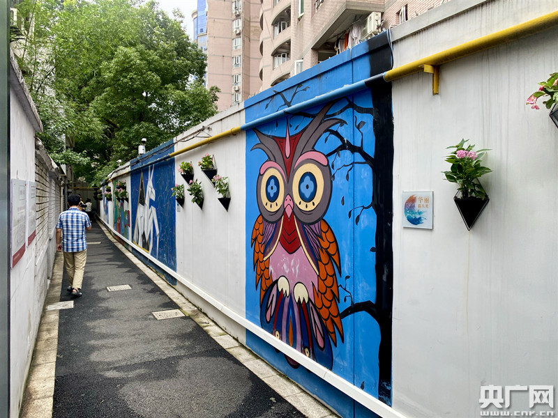 上海國際藝術(shù)節(jié)的藝術(shù)大師帶領(lǐng)順天村居民留下社區(qū)特色涂鴉(央廣網(wǎng)記者唐奇云 攝)