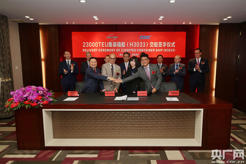 央廣網(wǎng)上海9月22日消息(記者郭淼 傅聞捷)據(jù)中央廣播電視總臺中國之聲《全國新聞聯(lián)播》報(bào)道,今天(22號)下午,全球首艘23000TEU(標(biāo)準(zhǔn)箱)雙燃料動力集裝箱船成功交付法國達(dá)飛海運(yùn)集團(tuán),該集裝箱船由中國船舶集團(tuán)擁有完全自主知識產(chǎn)權(quán),標(biāo)志著我國在世界大型集裝箱船領(lǐng)域成功實(shí)現(xiàn)從跟隨到引領(lǐng)。