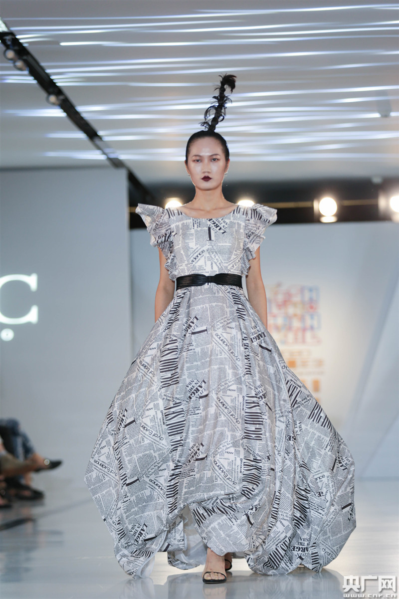 報紙紋印花系列旨在用報紙紋這一經(jīng)典元素結(jié)合當(dāng)下流行的數(shù)碼印花,讓禮服有了顛覆式創(chuàng)新,同時在搭配穿著上體現(xiàn)了復(fù)古的經(jīng)典。