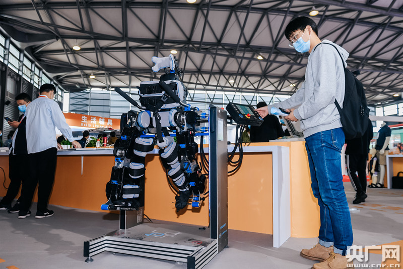 甚至還有一些更具未來(lái)感的產(chǎn)品在這里亮相,例如——外骨骼機(jī)器人以及腦機(jī)接口康復(fù)設(shè)備。外骨骼機(jī)器人是指套在人體外面的機(jī)器人,也稱(chēng)“可穿戴的機(jī)器人”。