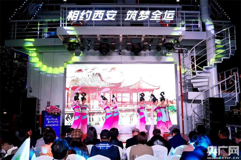 晚上七時(shí)許,伴著靈動(dòng)悠揚(yáng)的仿唐樂(lè)舞《綠腰踏鼓》,黃浦江“船長(zhǎng)8號(hào)”游輪鳴笛啟航。在近2小時(shí)的夜游巡航中,來(lái)自西安市的西咸新區(qū)、曲江新區(qū)、高新區(qū)等文旅資源區(qū)域代表分別做了精彩分享,向與會(huì)嘉賓推出了西安文旅的新熱點(diǎn)、新場(chǎng)景和打卡新地標(biāo),展示文化西安、時(shí)尚西安、創(chuàng)意西安的活力形象。舞蹈《七夕》至純至美,詩(shī)朗誦《熔鑄文明迎全運(yùn)》慷慨激昂、歌曲《來(lái)西安住些日子吧》溫暖親切……
