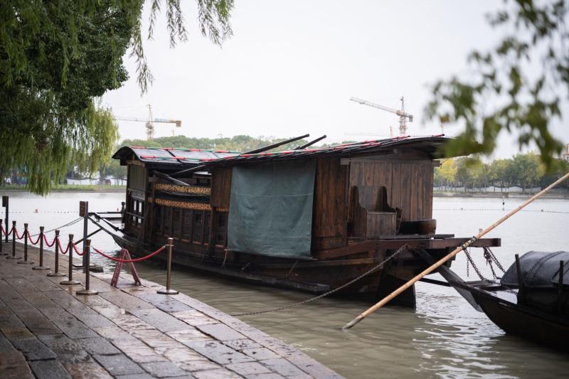 走在嘉興南湖邊,湖面波光瀲滟?拷膷u處,一艘復(fù)建于上世紀(jì)50年代的單夾弄中型畫舫靜靜停泊著。