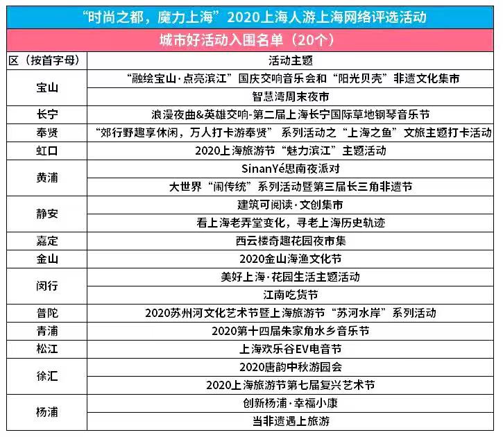為了對(duì)全年活動(dòng)進(jìn)行總結(jié)與回顧,也為更好的在2021年推出新活動(dòng),展現(xiàn)新面貌,特開展“時(shí)尚之都,魔力上海”2020“上海人游上!本W(wǎng)絡(luò)評(píng)選活動(dòng),借助東方網(wǎng)平臺(tái),評(píng)選出“上海市民最喜歡的微游上海特色旅游線路”和“最受上海市民歡迎的城市好活動(dòng)”。