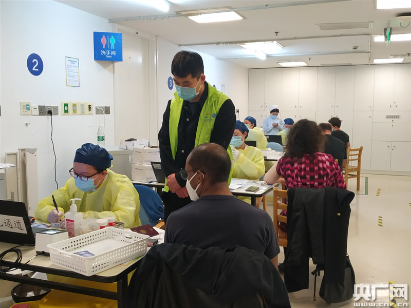 志愿者協(xié)助外籍人士在接種時進行翻譯、溝通(央廣網記者林馥榆 攝)