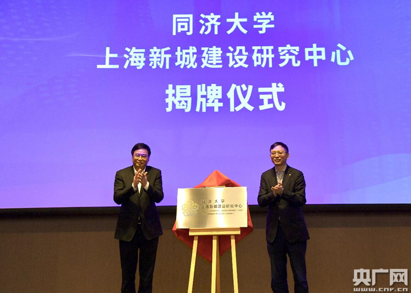 上海市副市長(zhǎng)湯志平(左)與同濟(jì)大學(xué)黨委書(shū)記方守恩(右)共同揭牌(央廣網(wǎng)發(fā) 同濟(jì)大學(xué)供圖)