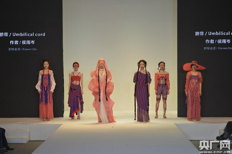 發(fā)布會結(jié)束后,東華大學(xué)服裝與服飾設(shè)計專業(yè)(中日合作班)的準(zhǔn)畢業(yè)生侯雨岑長舒了一口氣,她的系列設(shè)計作品“臍帶”剛剛成功發(fā)布。