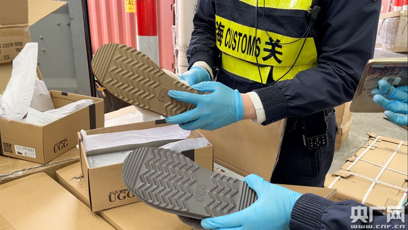 該批貨物擬出口澳大利亞,經(jīng)現(xiàn)場查驗關(guān)員仔細清點,多為 “UGG”女士鞋靴,包括拖鞋、短靴、低幫鞋等,涉案貨值約人民幣50余萬元。經(jīng)相關(guān)權(quán)利人確認該批貨物為侵權(quán)產(chǎn)品。目前,該案正在進一步辦理之中。