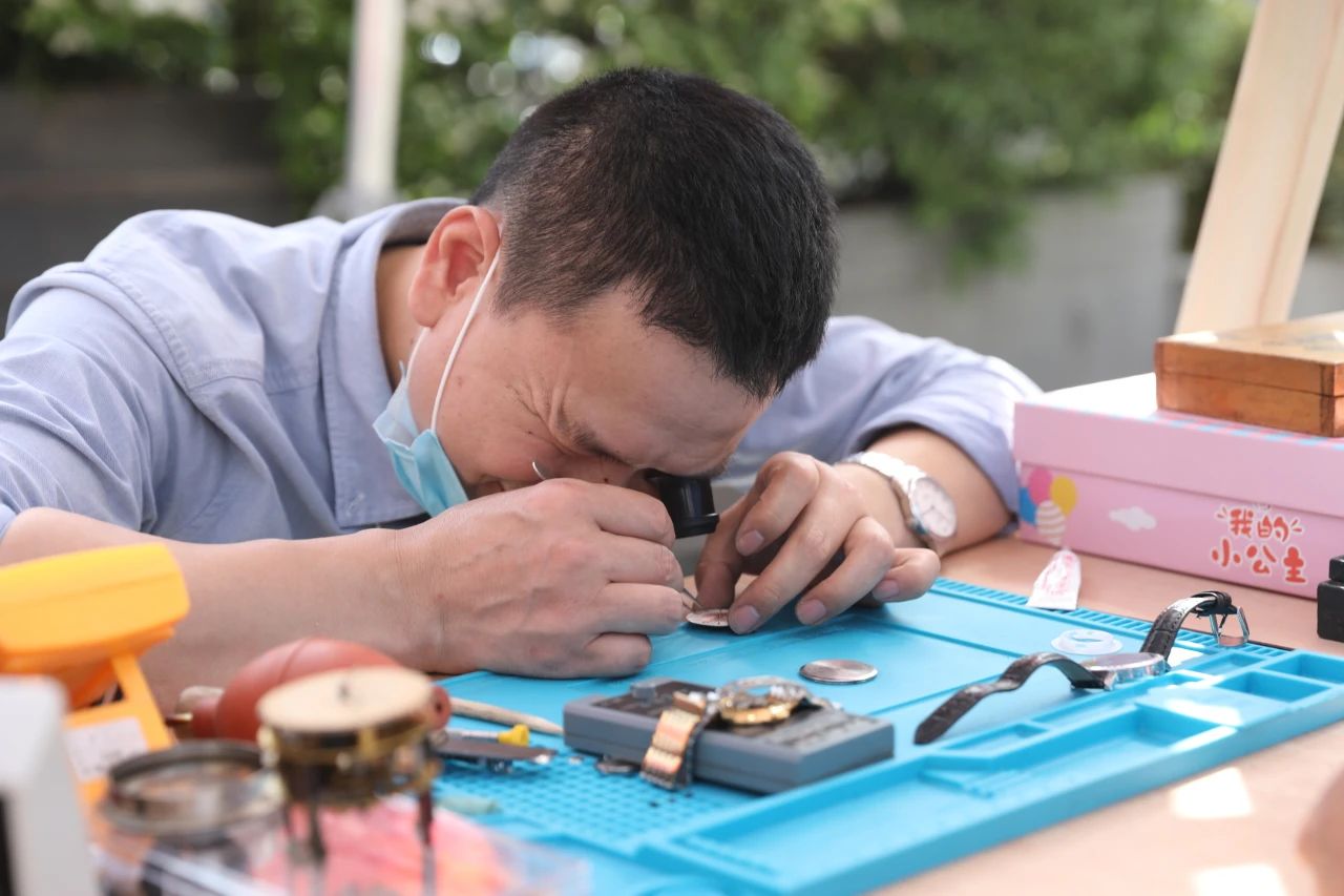 市民吳老伯得知后特意趕來,他告訴記者,自己的手表戴了十多年,沒想到在這里有老師傅幫忙修理,還不收服務(wù)費(fèi),真是太好了,“又有非遺美食,還有手藝人維修,真的很方便。”