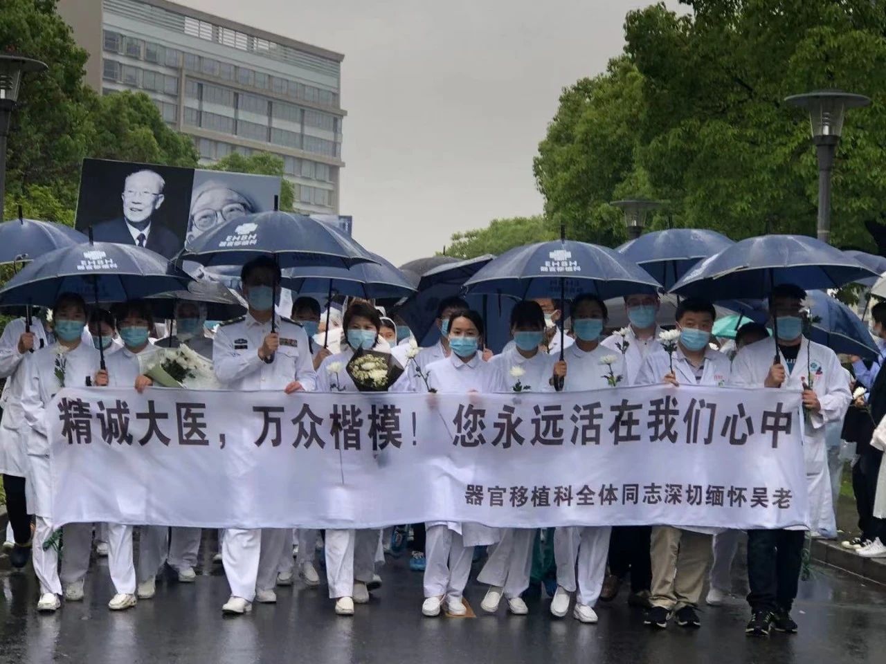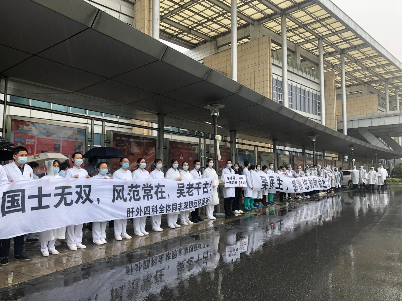 從醫(yī)院門口的前炬路到醫(yī)院門診、住院部,聚集了無數(shù)冒雨前來送別的市民。“吳醫(yī)生,感謝您的救命之恩”“國士無雙,風范常在,吳老千古”的橫幅,承載著市民、患者、醫(yī)護人員的不舍之情。
