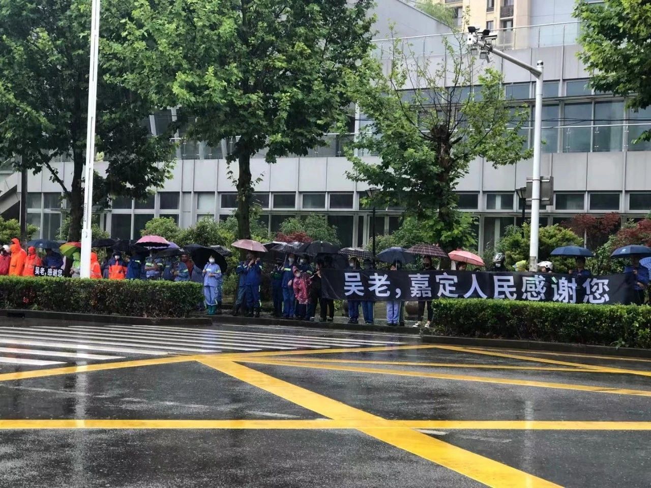 隨后,靈車途經(jīng)墨玉北路、安亭市民廣場等地,人們自發(fā)聚集在道路兩側,舉起“嘉定人民感謝您”的橫幅,目送吳老的靈車緩緩駛離,一聲又一聲地喊著:“吳老,一路走好!”